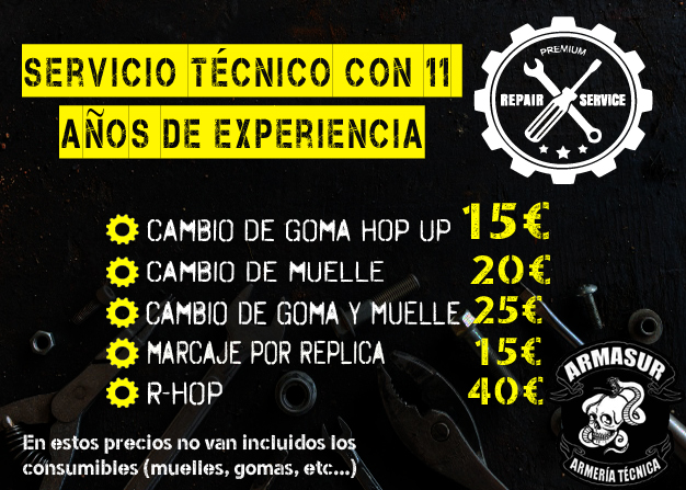 • SERVICIO TÉCNICO Y PIEZAS INTERNAS PARA UPGRADEServicio técnico de Armasur con mas de 10 años de experiencia en el sector.