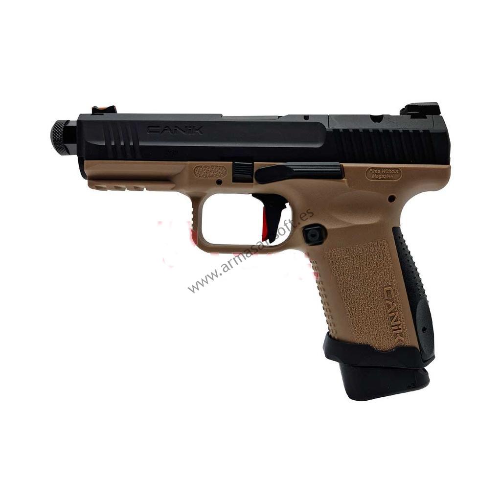 Una réplica con licencia de la pistola Canik TP9, creada en cooperación con Cybergun y SAIlent Arms. La réplica está hecha de metal y plástico duradero. Tiene Blowback. La corredera, el cañón exterior y la palanca de caída deslizante estaban hechos de metal, mientras que el plástico se utilizó para crear el esqueleto, el pie de revista extendido y los manipuladores individuales. La pistola está equipada con una mira trasera SAI fija y una mira delantera de fibra óptica, y debajo del cañón hay un riel de montaje (21 mm. de ancho), en el que puede colocar accesorios tácticos, como una mira láser o una linterna.