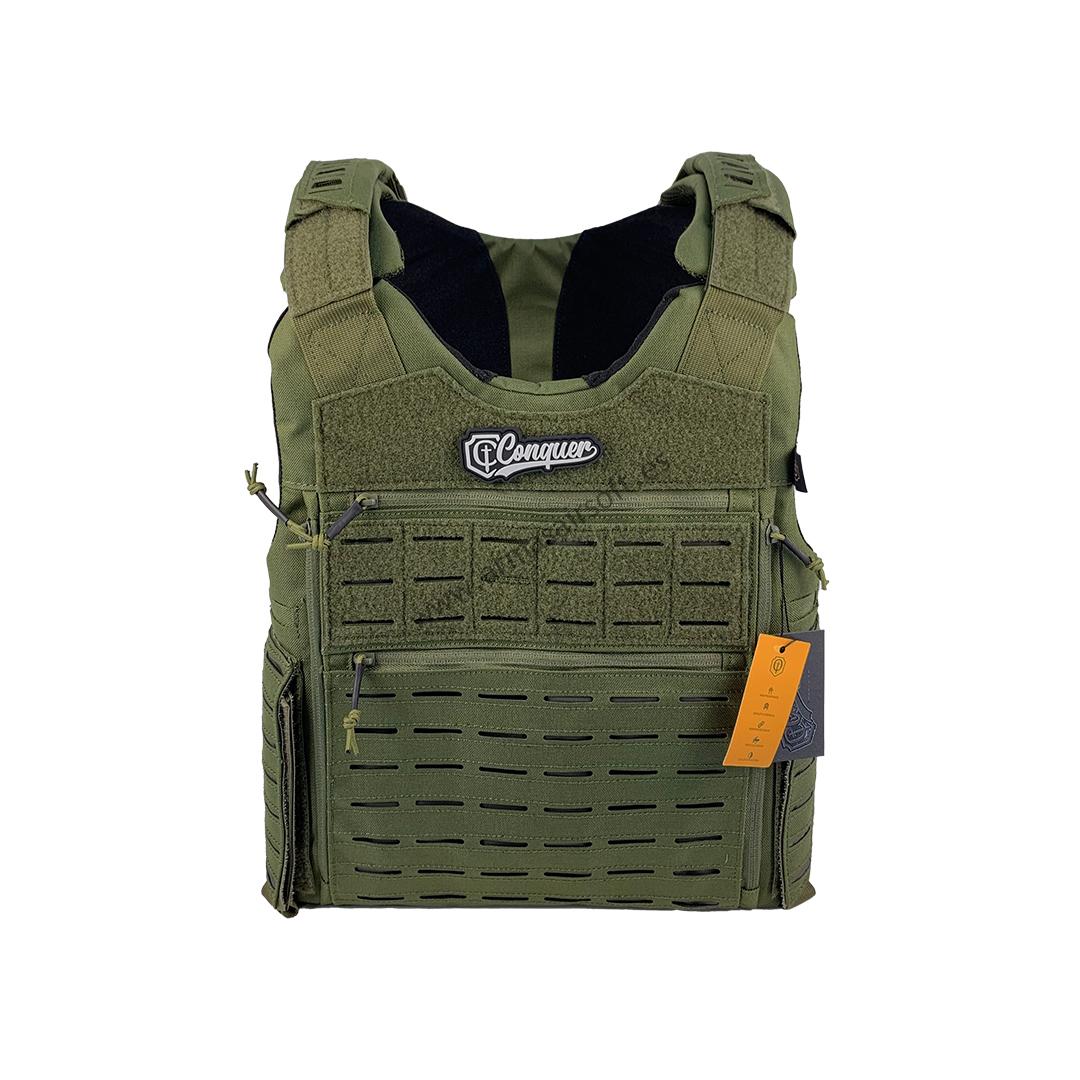 - Cummerbunds anchos y panel frontal con MOLLE laser cut.