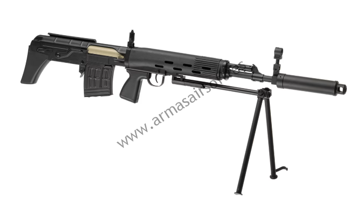 Después de muy buenas opiniones de la versión anterior de SVU, CYMA presenta la próxima réplica de este popular rifle de francotirador. El rifle icónico de mano de obra de alta calidad es una posición que complacerá a muchos jugadores de airsoft. La réplica está fabricada con materiales de alta calidad como aluminio, polímero y acero. Piezas de acero: tapa del receptor, palanca de seguridad, guardamonte y cargador. Las piezas de aluminio son: bocacha, canón exterior, bloque de gas, receptor, portador de perno, extensión del receptor, riel de montaje del visor. Empunadura de pistola, guardamanos y culata de polímero.