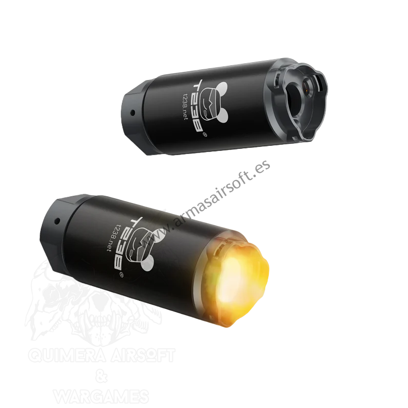 Esta unidad trazadora es ideal para partidas nocturnas. Permite iluminar las bolas trazadoras y también dar un fogonazo frontal naranja muy realista. Se puede elegir solo trazador, solo fogonazo o ambos juntos, permitiendo su uso durante el día también o incluso sin bolas trazadoras.