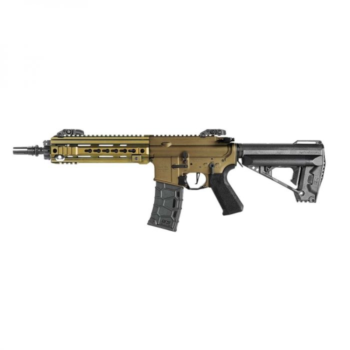 CARACTERÍSTICAS: – Largo: 712 / 795 mm – Canón interno: 275 mm – Peso: 2900 g – Capacidad. 120 tiros – Miras ajustables y abatibles – Keymod – Ambidiestra – Mosfet – Rodamientos de 8 mm – Incluye maletín de transporte rígido.